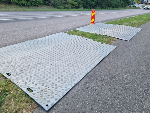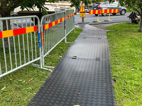 Markskyddet är designad för smidig användning i fält. Tack vare handtag i varje ände och fästhål i hörnen kan mattorna enkelt flyttas och installeras manuellt – utan behov av maskiner eller specialutrustning. Mattan har två olika greppytor – en slät och en strukturerad, noggrant utformade och testade för att ge bra grepp och säker framkomlighet i varierande miljöer. Det breda utbudet av anslutningsalternativ gör det enkelt att skapa sammanhängande gångvägar, arbetsytor eller tillfälliga uppställningsplatser.